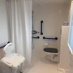 Il bagno era pulito ma adatto per il mio soggiorno di 6 giorni. C'era anche un parcheggio piccolo e una piscina grande.